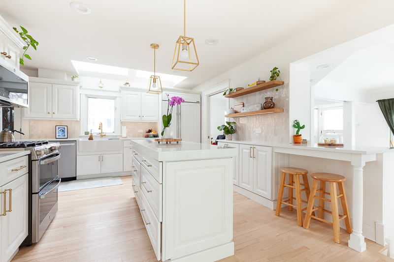 One of the most impactful updates was opening the wall between the kitchen and family room. This structural change immediately improved sightlines and natural light, allowing the kitchen to function as a true gathering space. The new layout creates a seamless connection between cooking, dining, and relaxing—ideal for both daily living and entertaining.